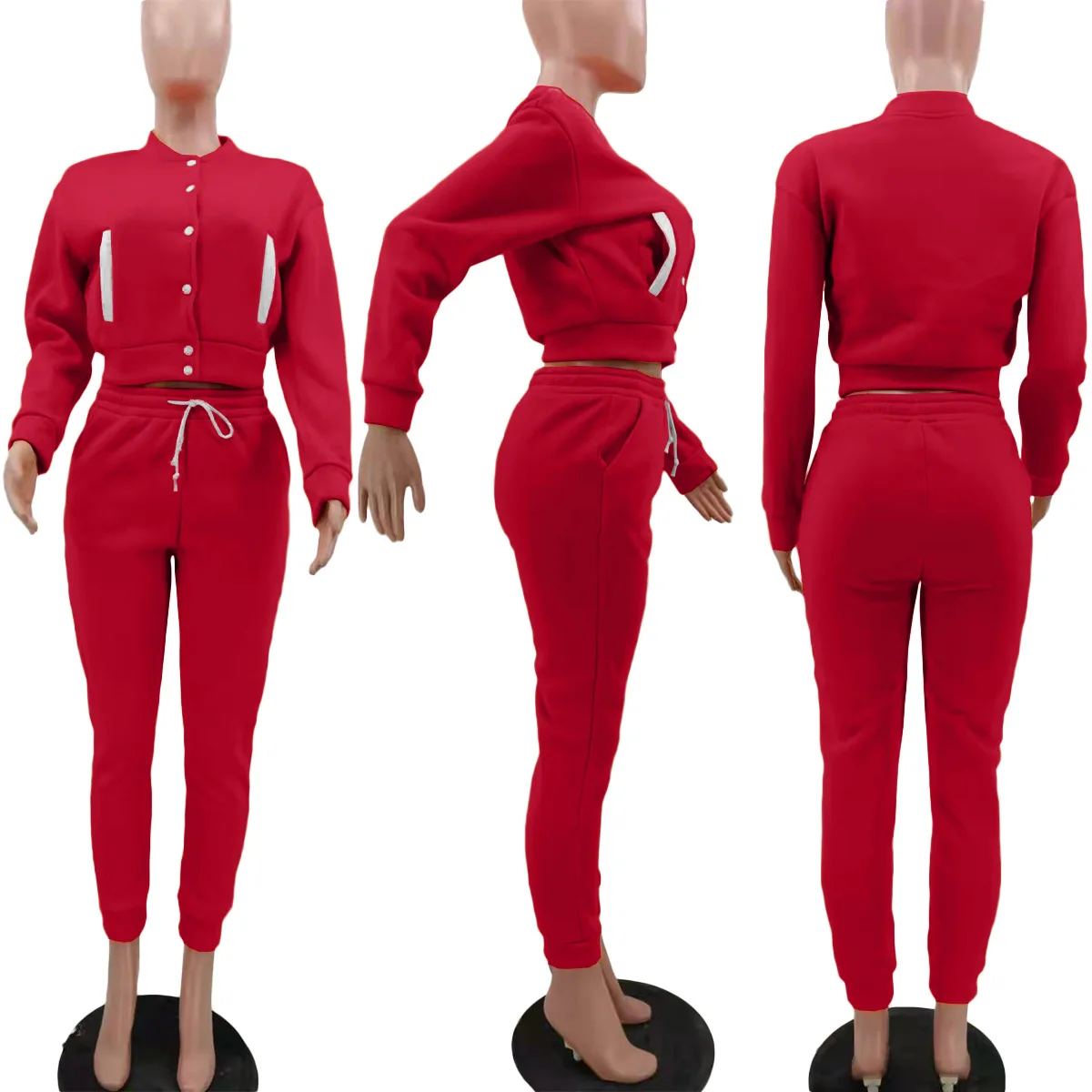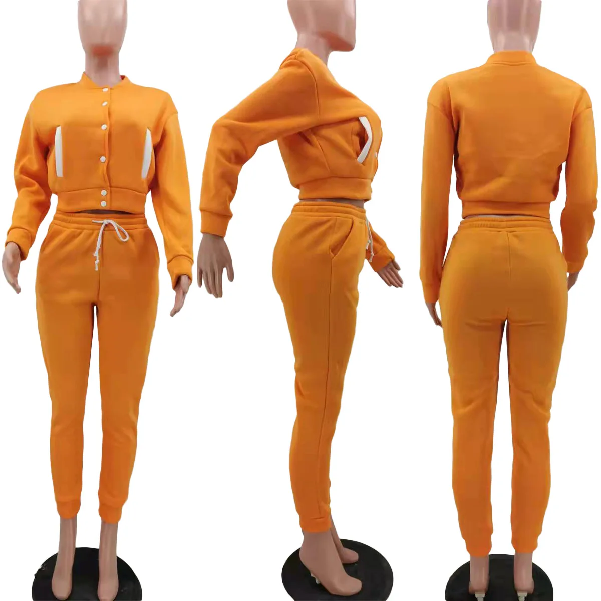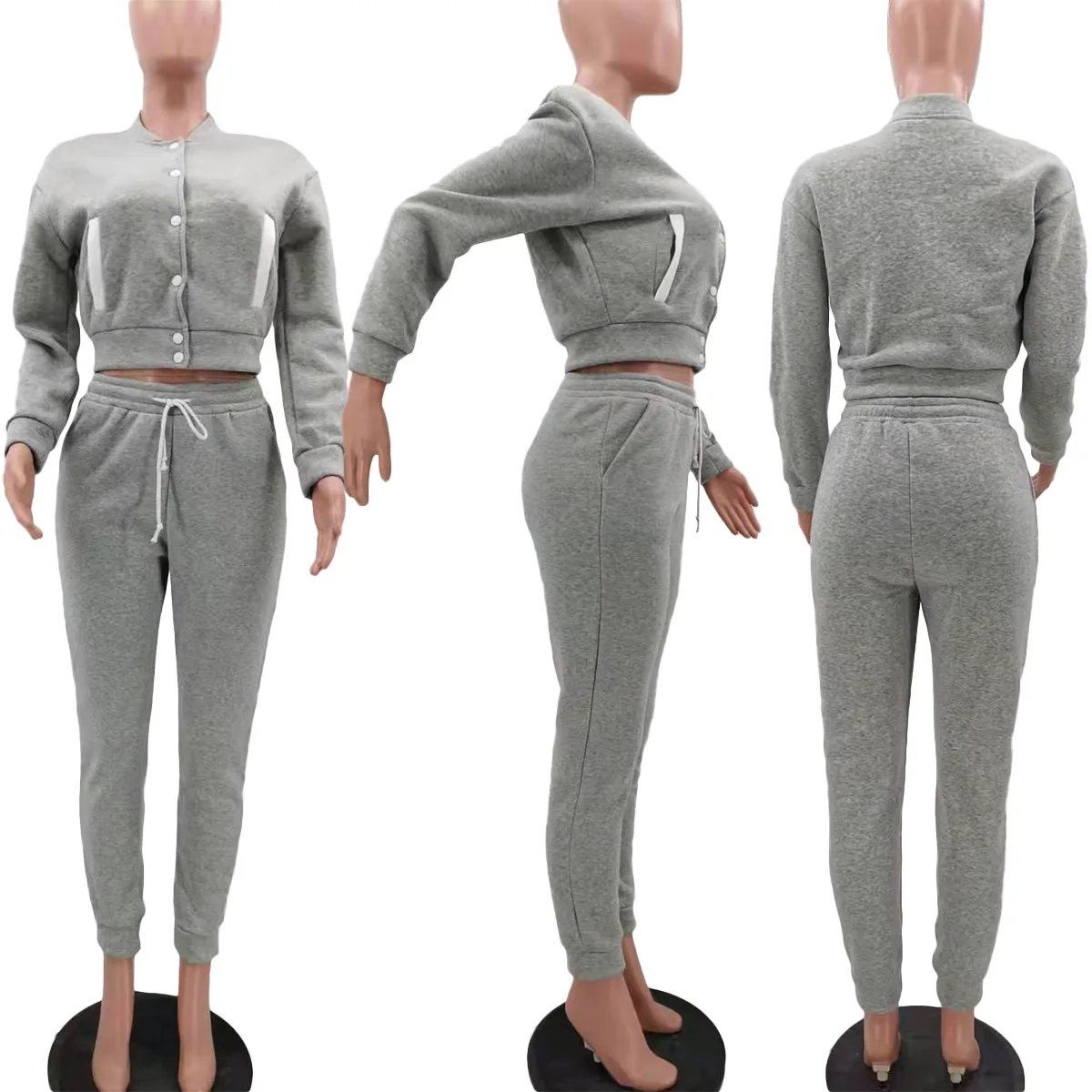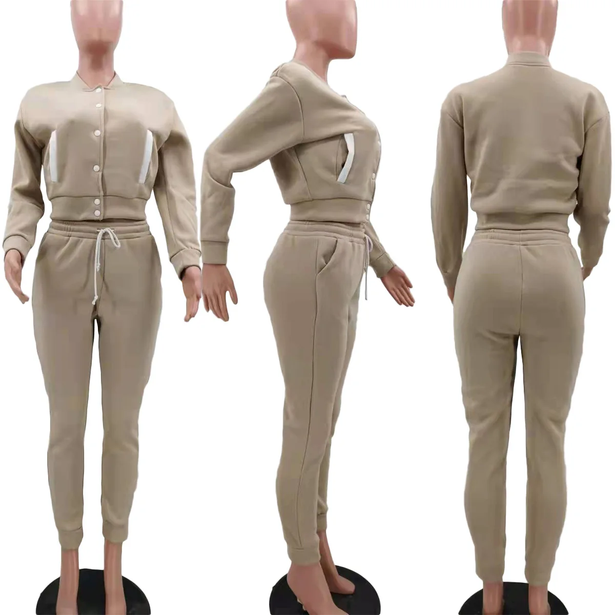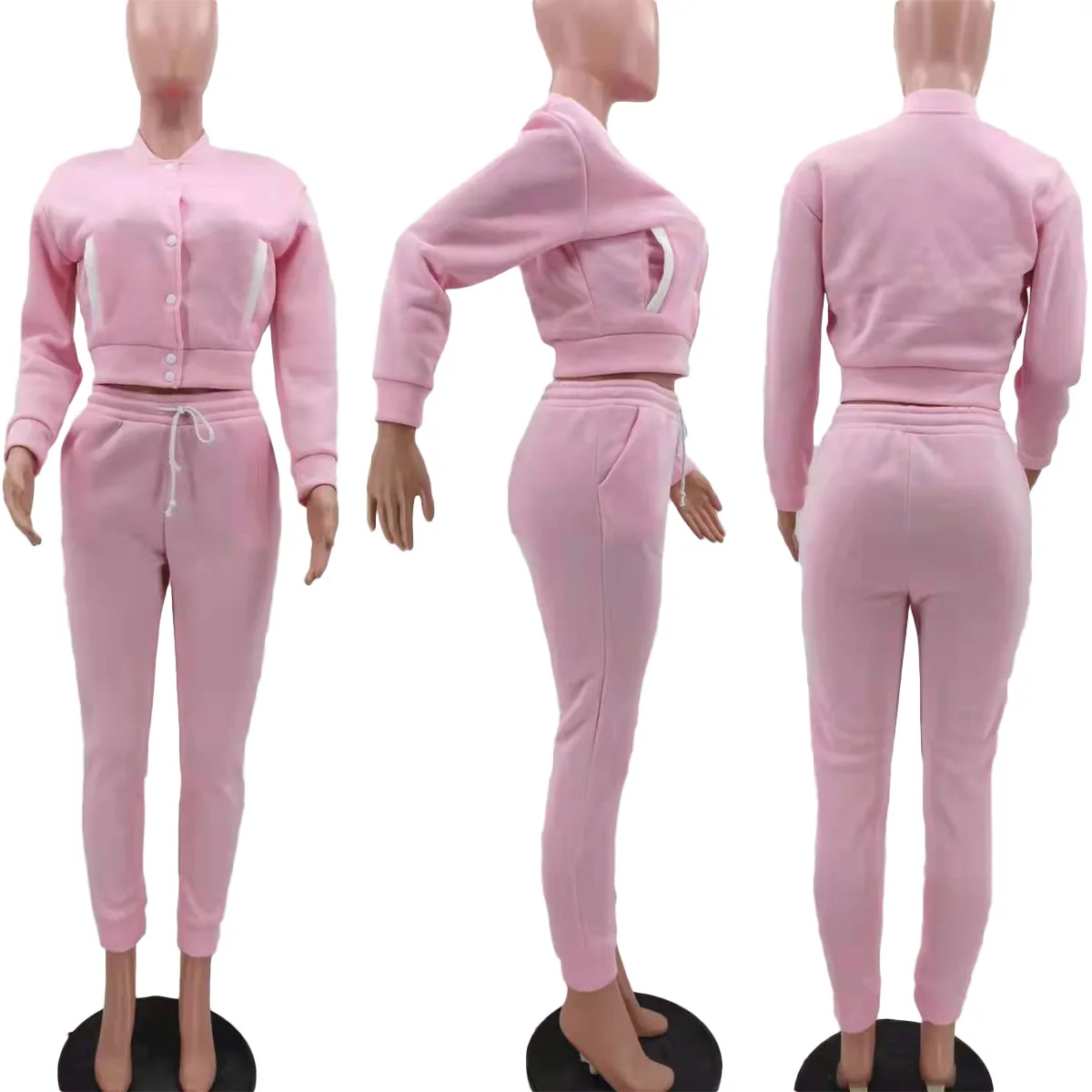 track suits women winter sweatsuit set baseball style fleece tracksuits for women