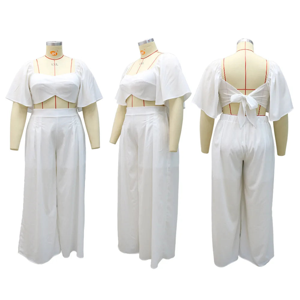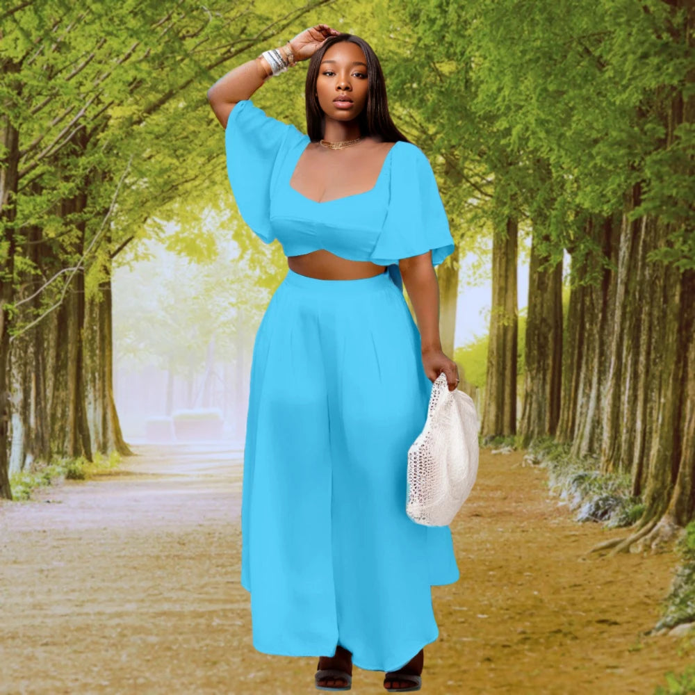 10501-MX30 Loose Wide Leg Plus Size Two Piece Pants Set Women Sehe Fashion