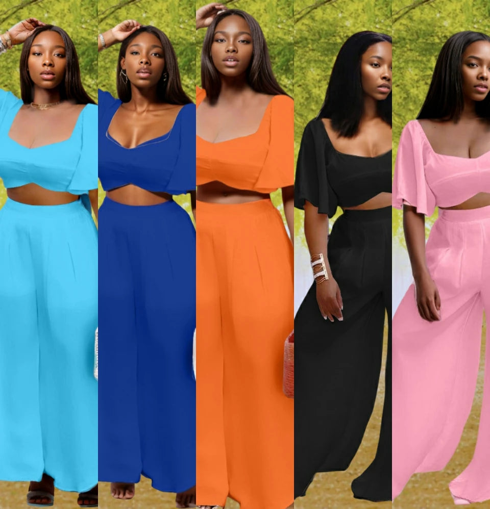 10501-MX30 loose wide leg plus size two piece pants set women sehe fashion