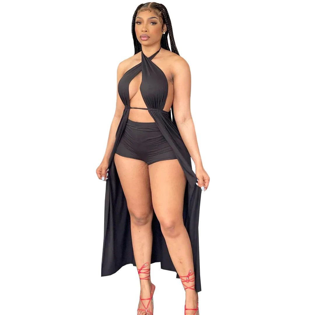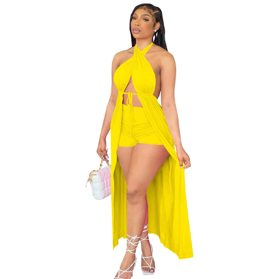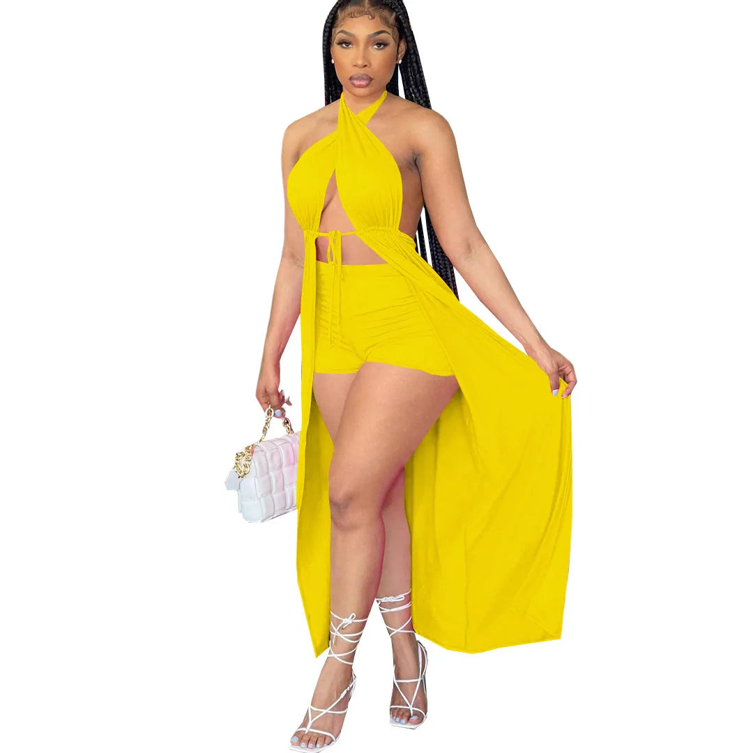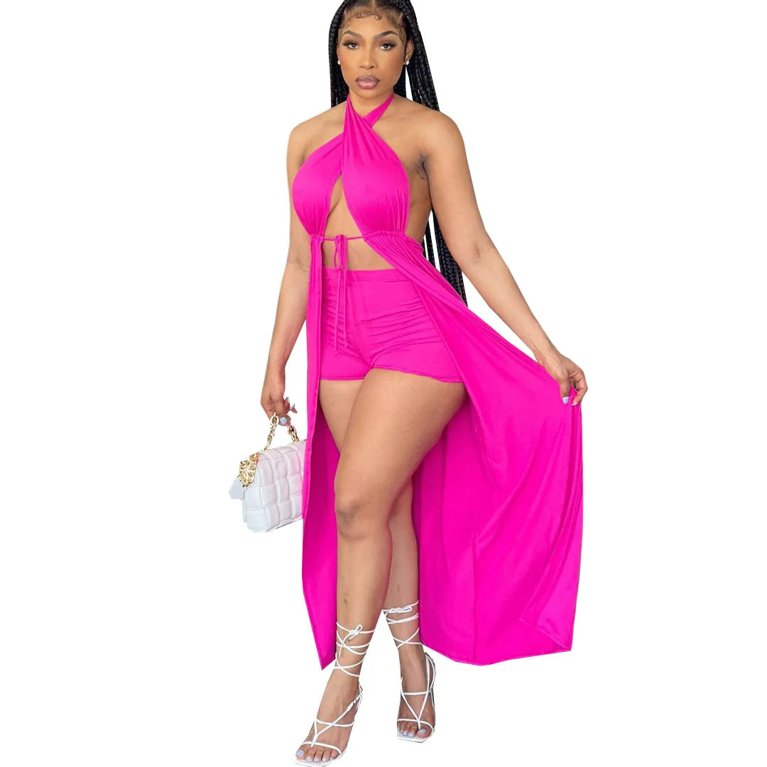 Solid Dress 2 Piece Pure Colour Halter Two Piece Short Set for Ladies Casual Clothes