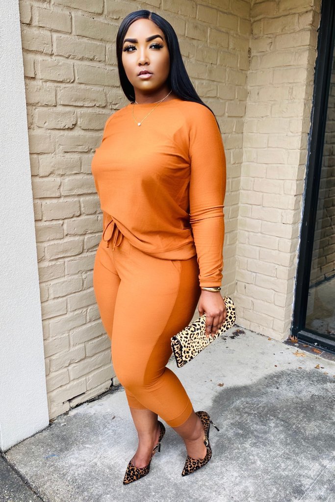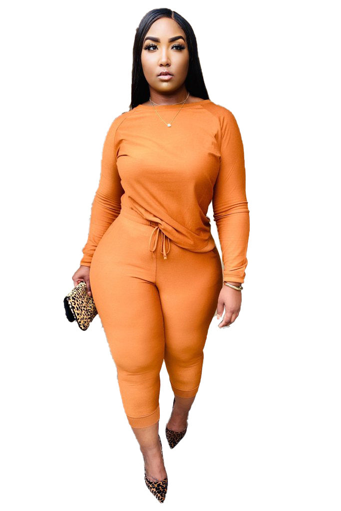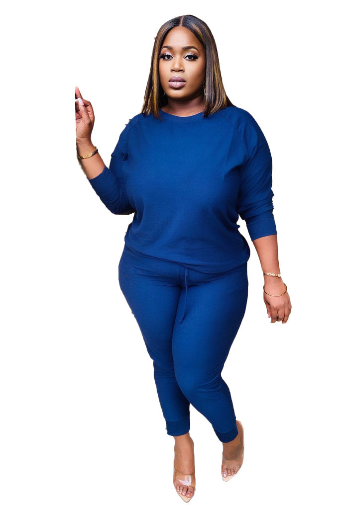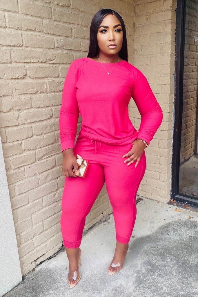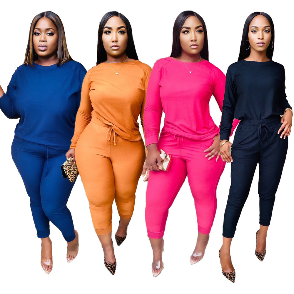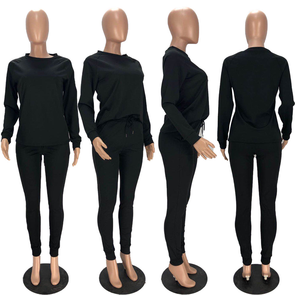 Fashion Solid color casual Top And Pants Long Sleeves Sport Suit Two Piece Set Women Clothing