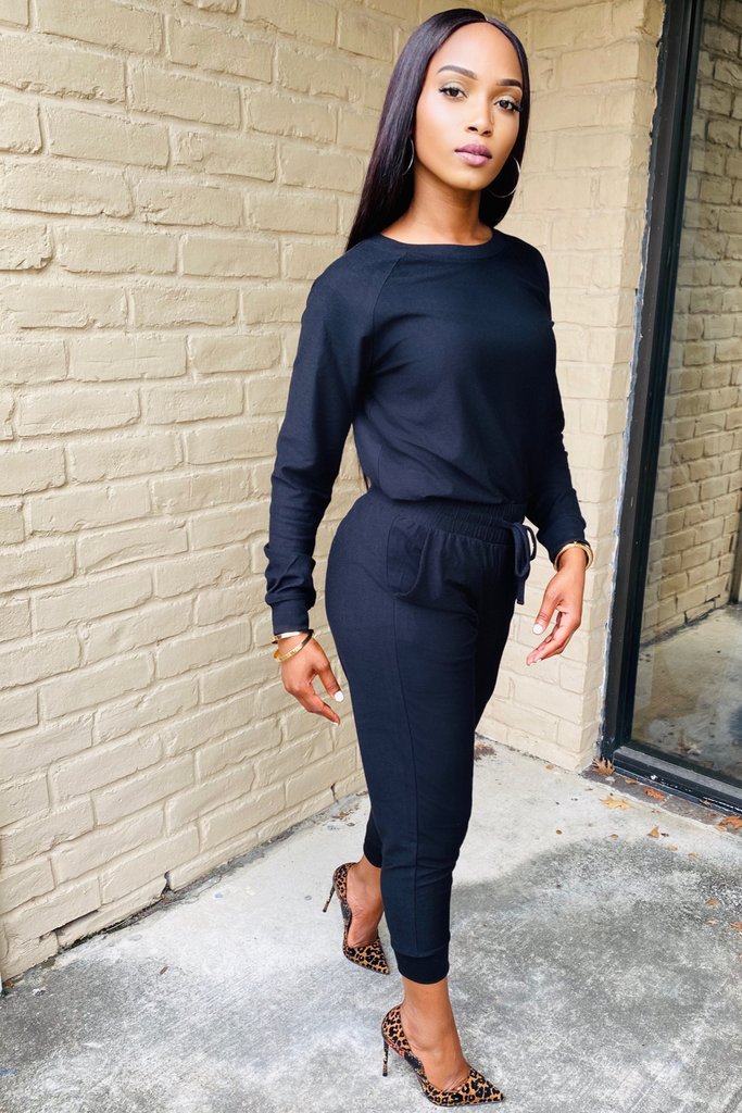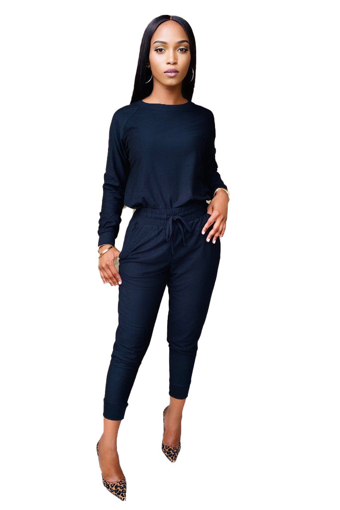 | Model number | Fashion Solid Black casual Top And Pants Long Sleeves Fake zipper Sport Suit Two Piece Set Women Clothing |