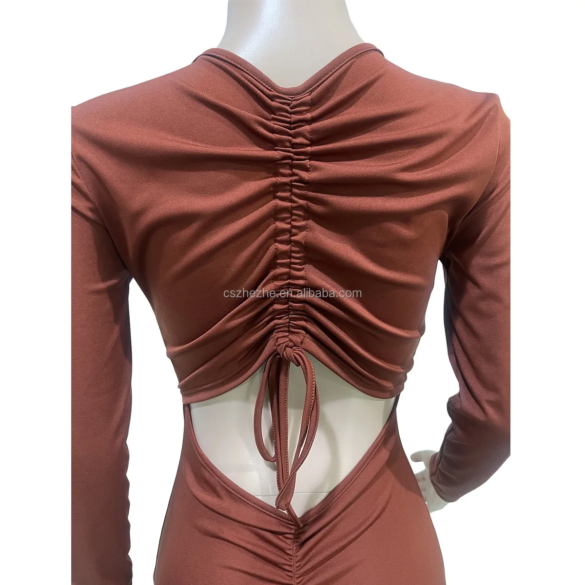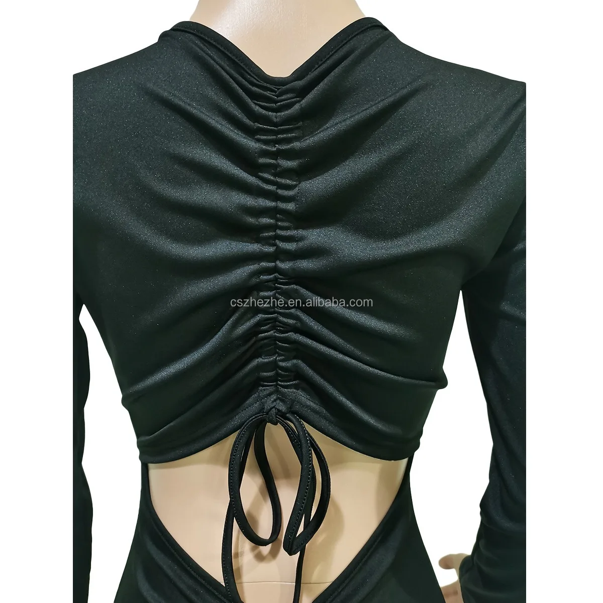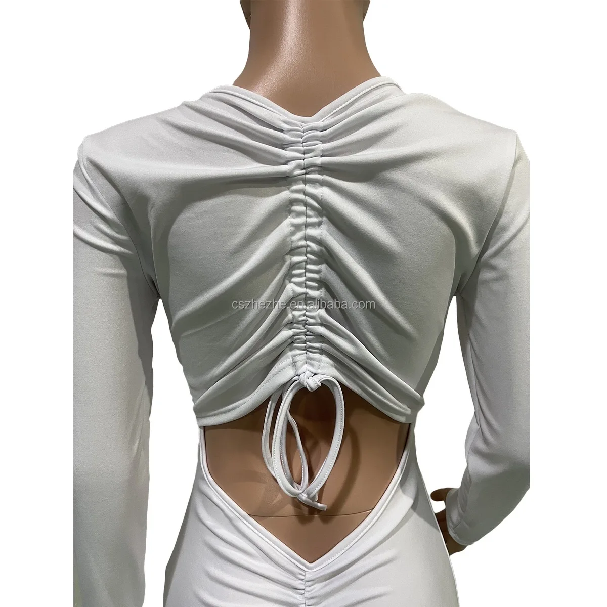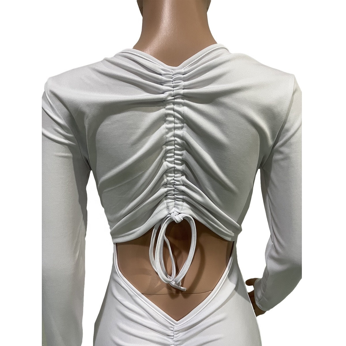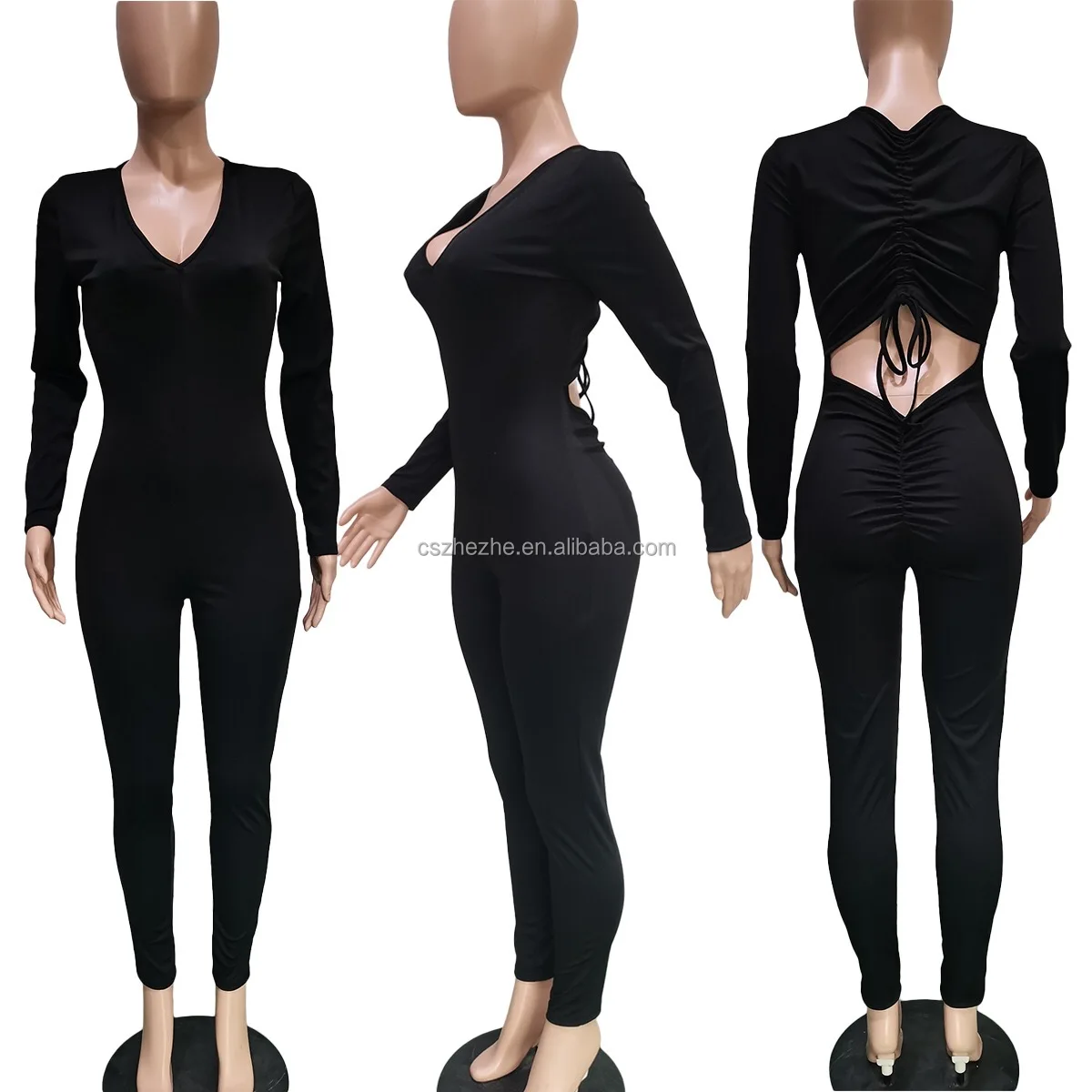 High quality solid color long sleeve bodycon jumpsuits ruched backless one piece rompers jumpsuits elegant for women