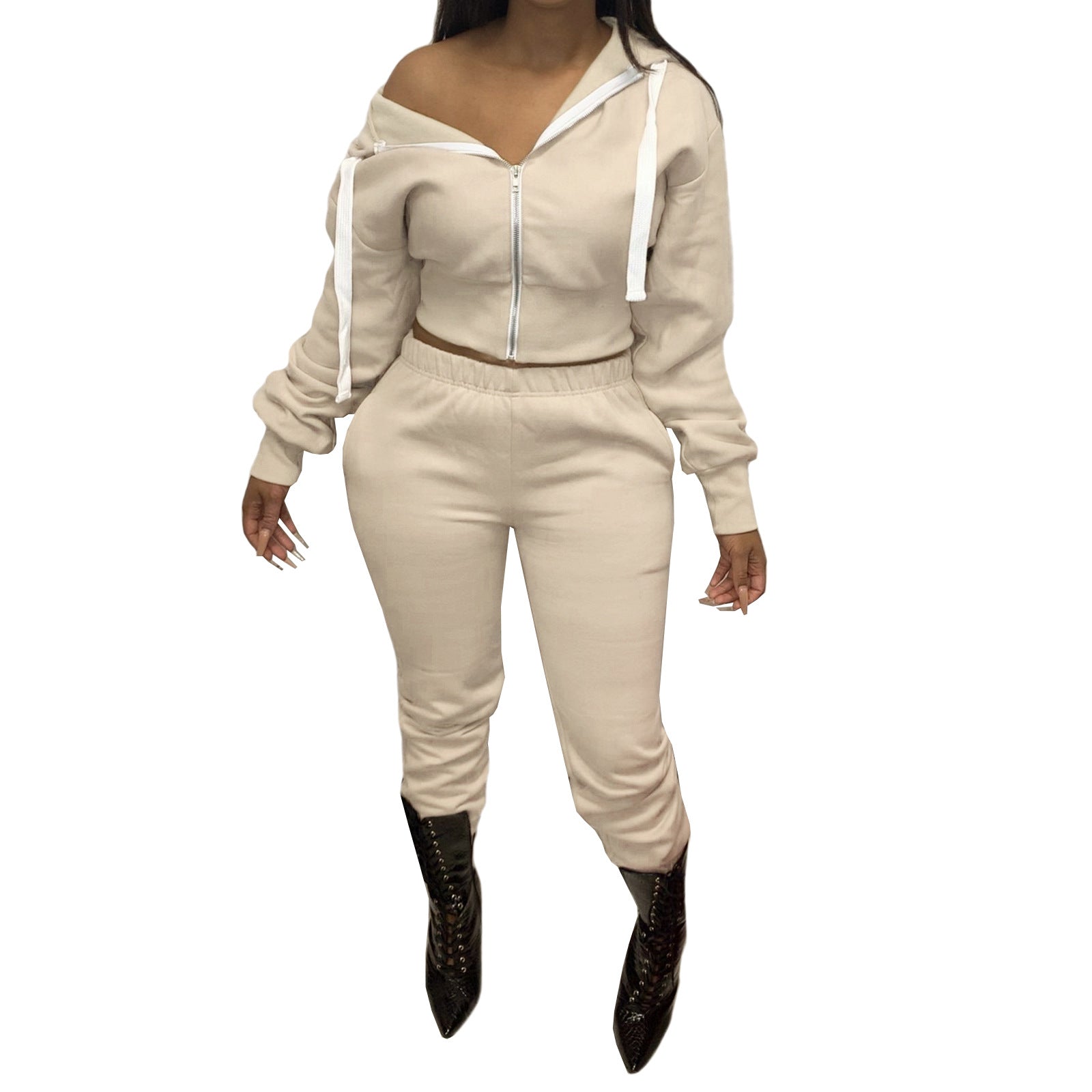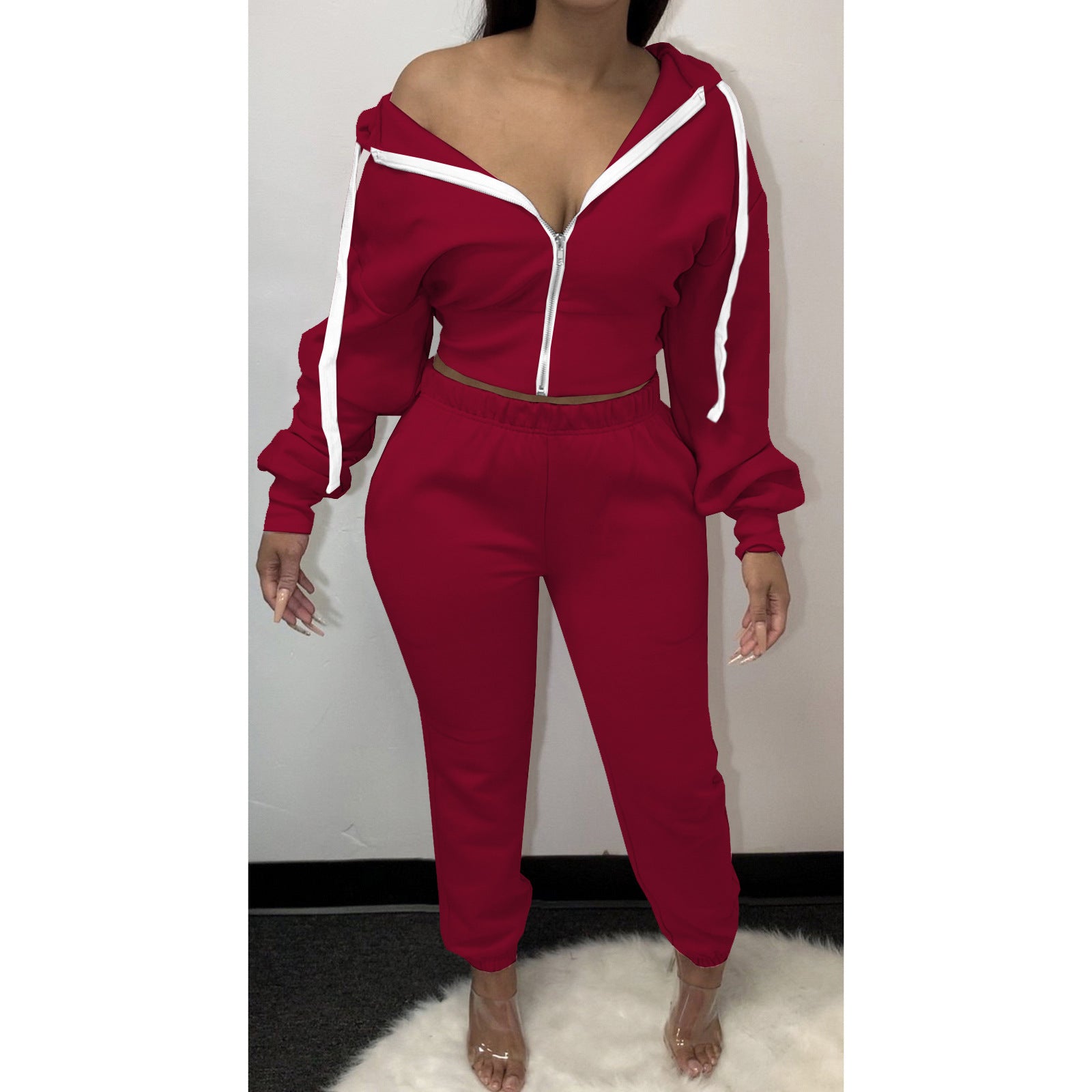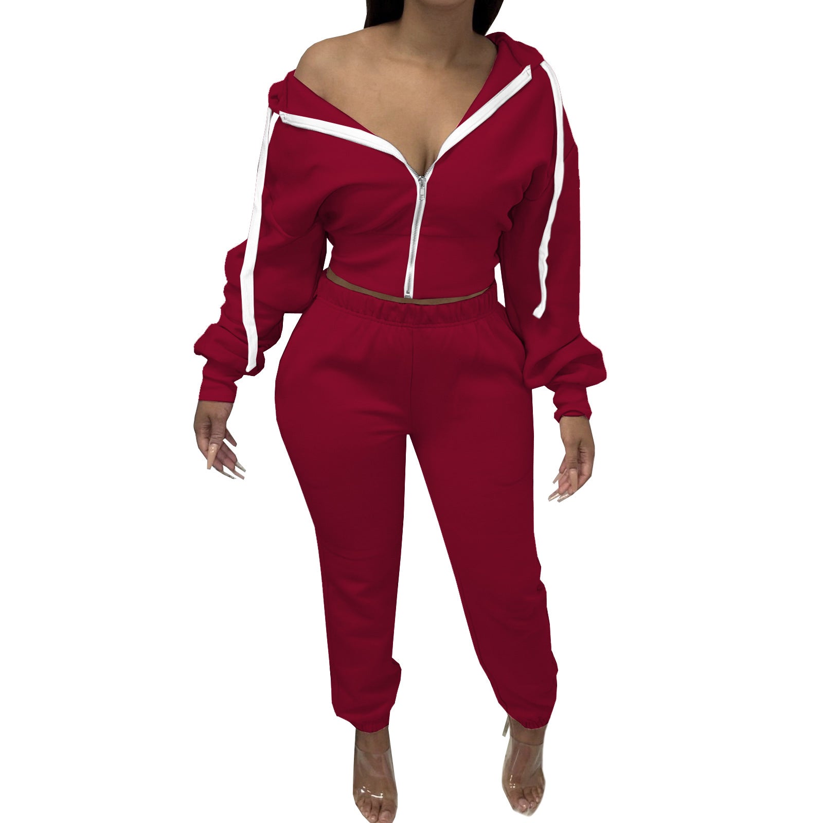 LvCong wholesale cheap price solid color two piece hoodie sets 2022 custom women jogger two piece track suit