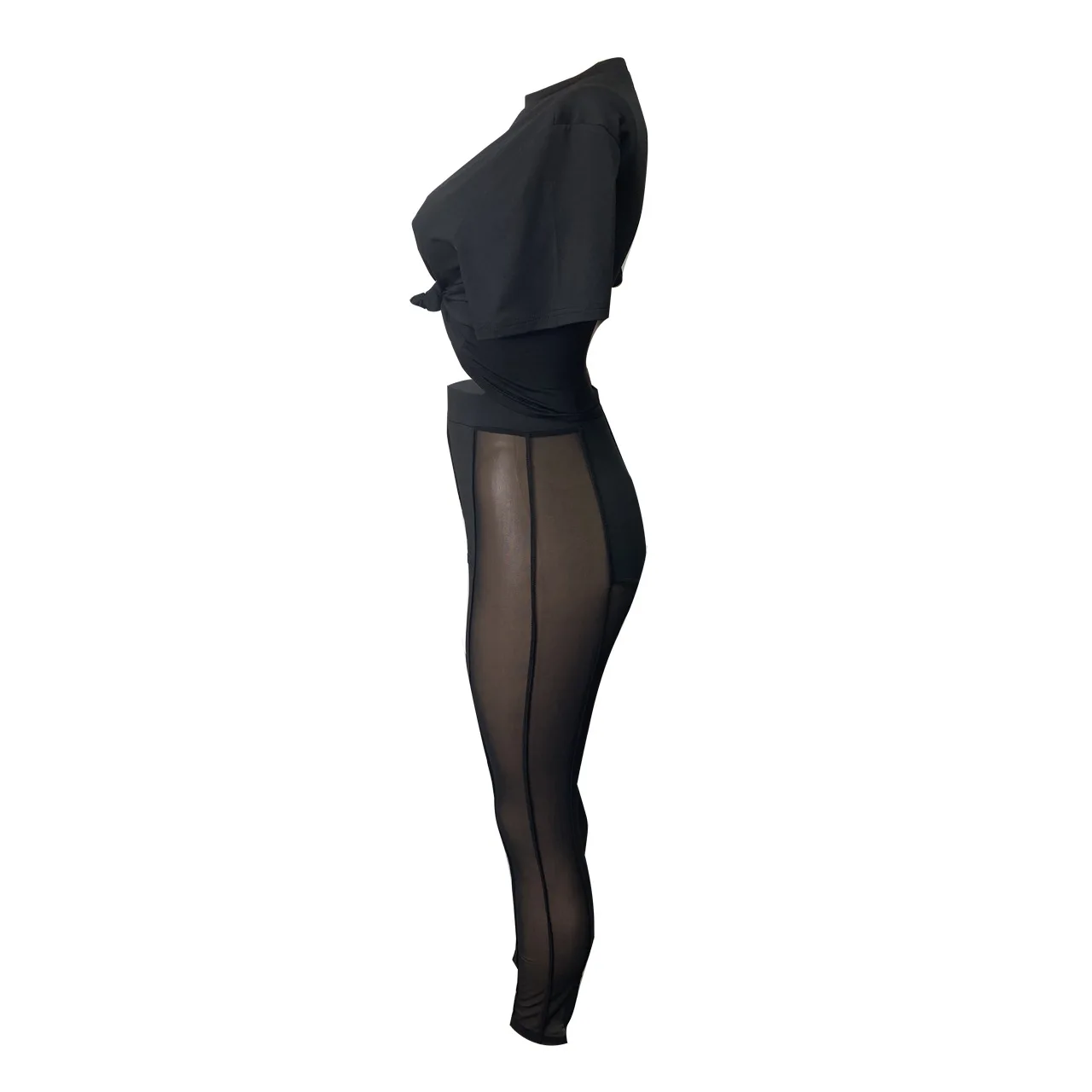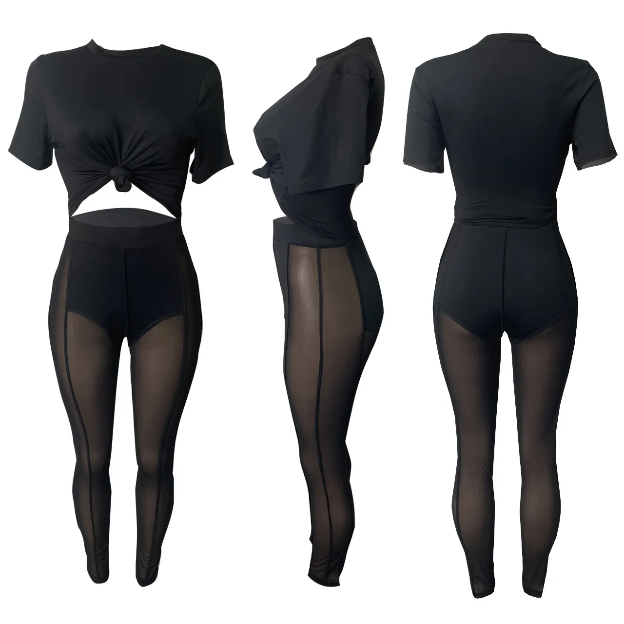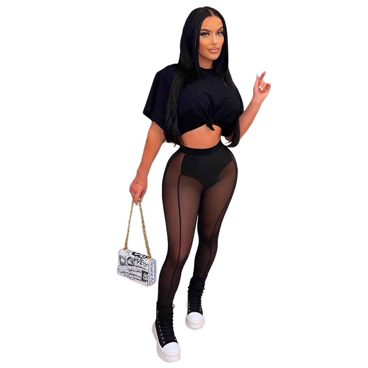 Mesh Pants Summer Outfit Matching Casual Crop Tops Two Piece Pants Sets 2022 Women Clothes Two Piece Set Women Clothing 2pc Sets