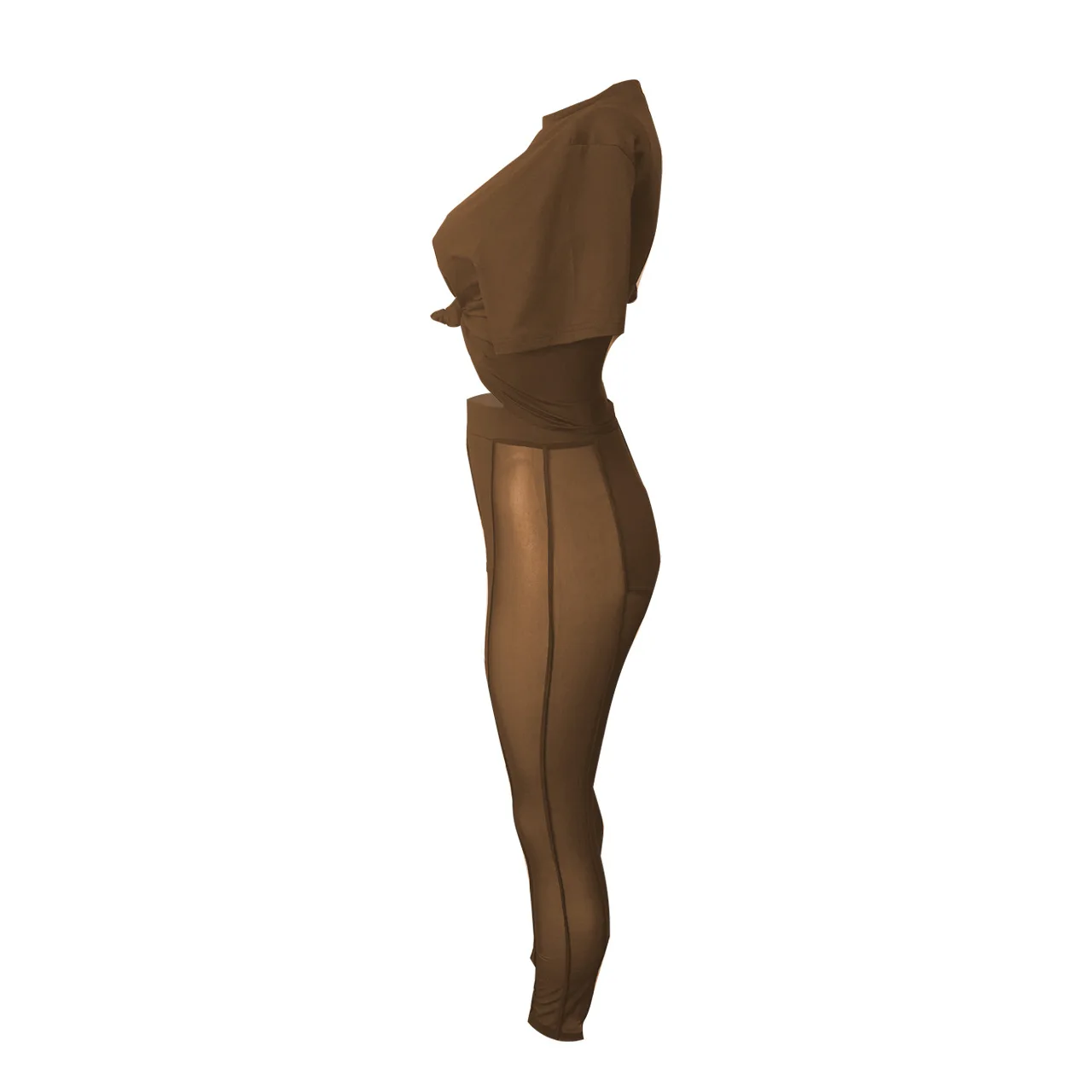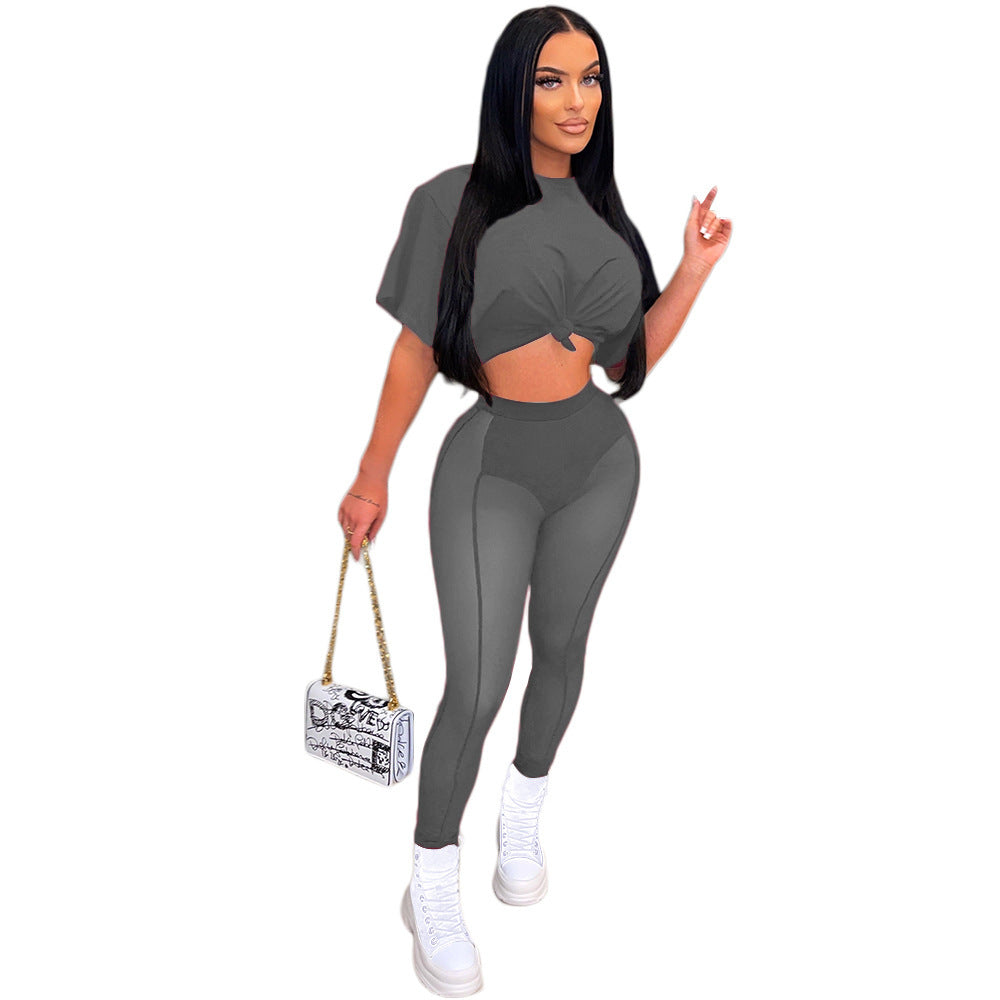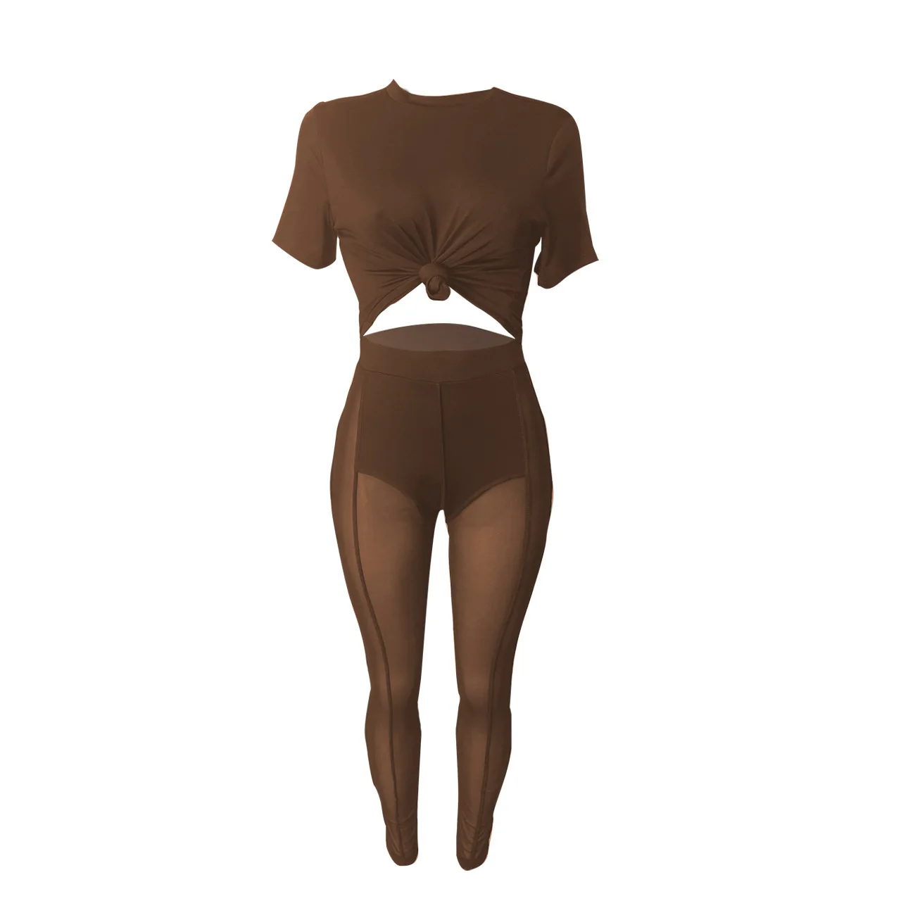 Mesh Pants Summer Outfit Matching Casual Crop Tops Two Piece Pants Sets 2022 Women Clothes Two Piece Set Women Clothing 2pc Sets