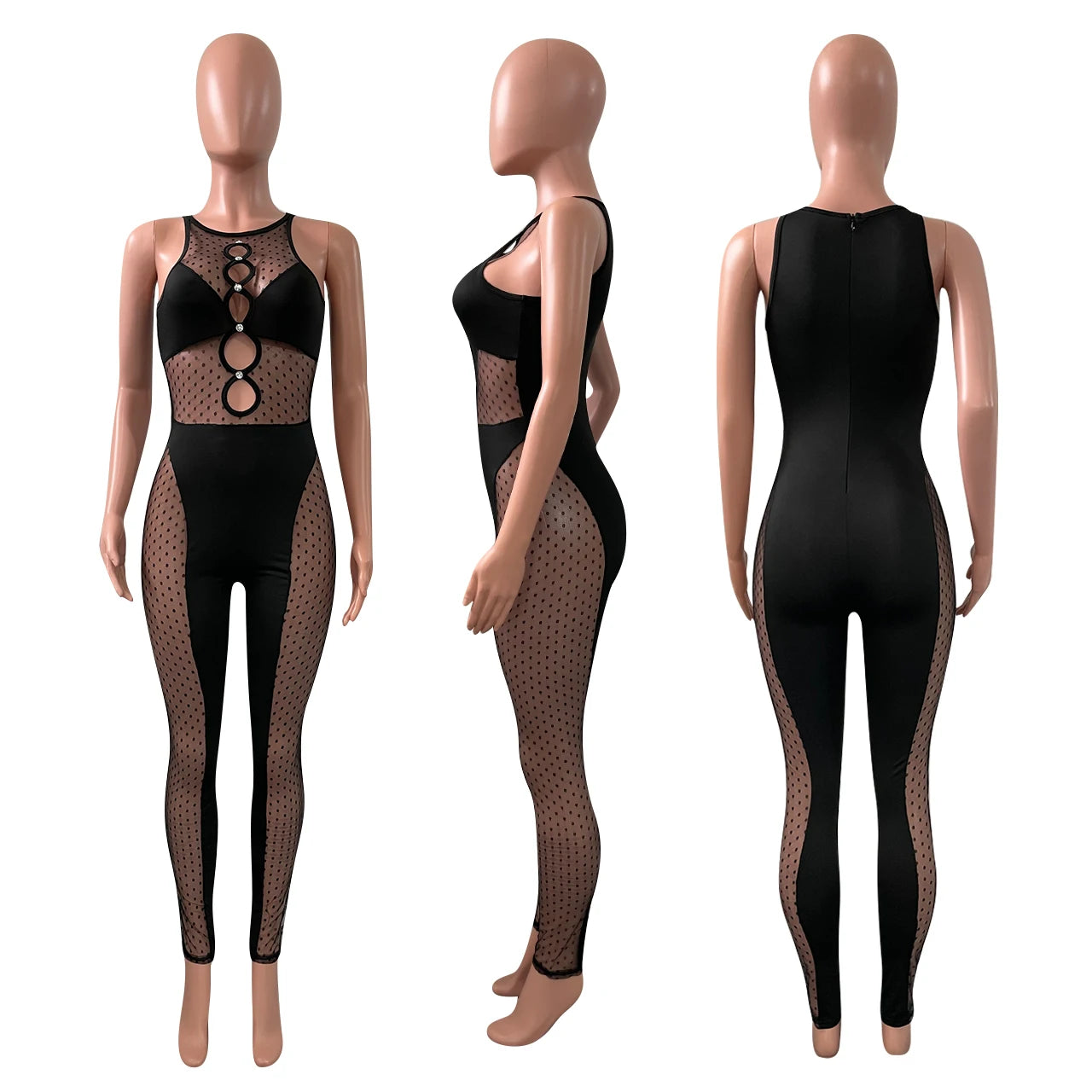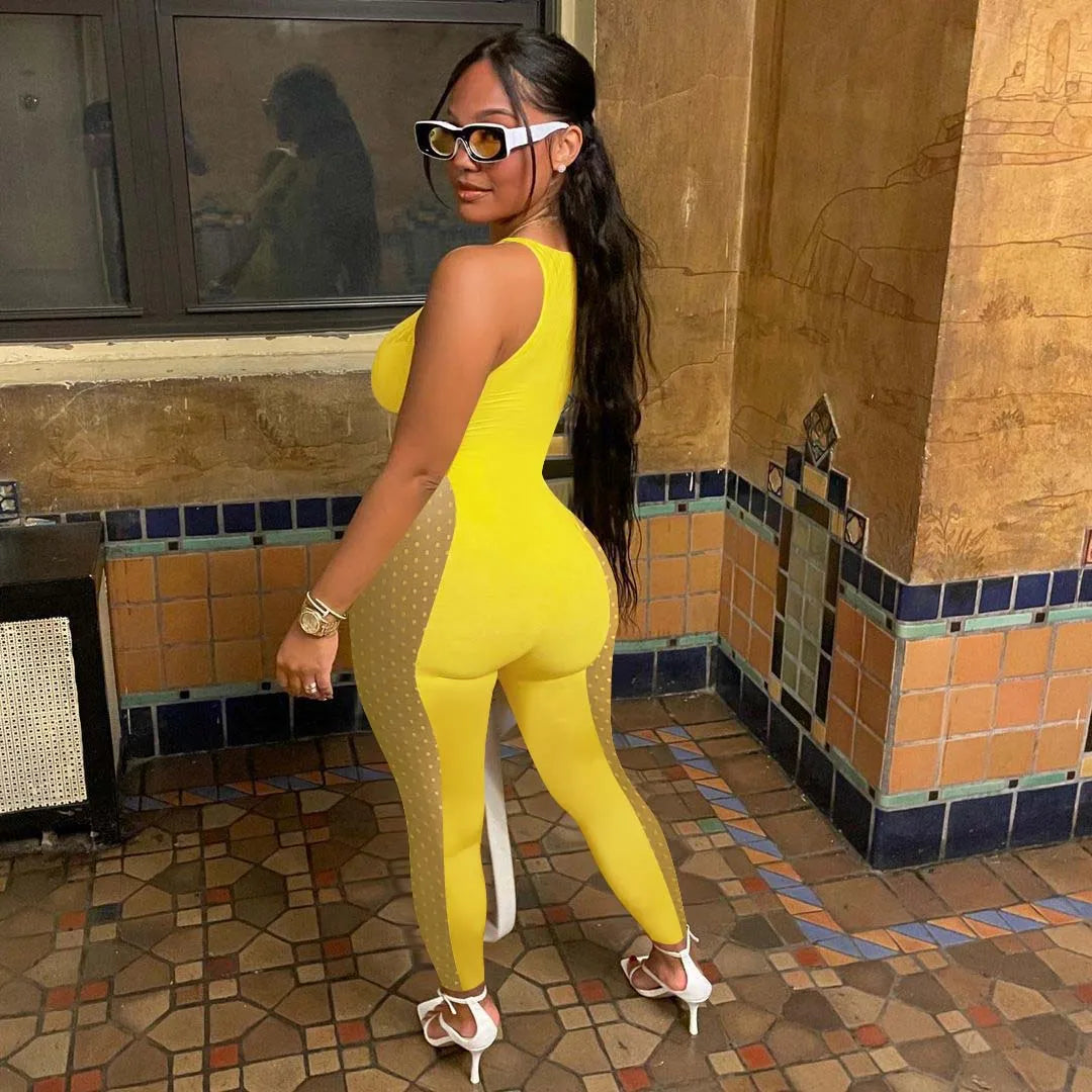 Sheer One Piece Jumpsuits Shapewear Bodycon Woman Pants Sleeveless Hollow Cut Out Jumpsuit for Women New Spring Lady Jumpsuit