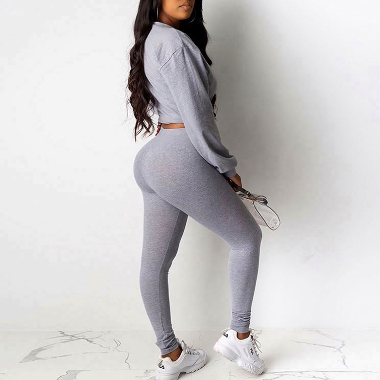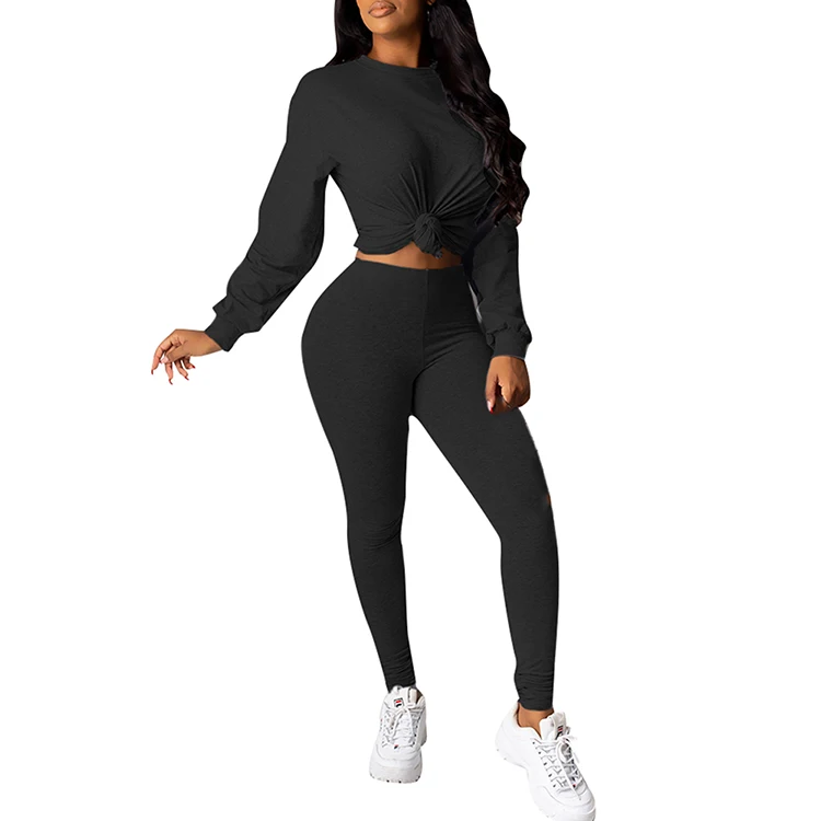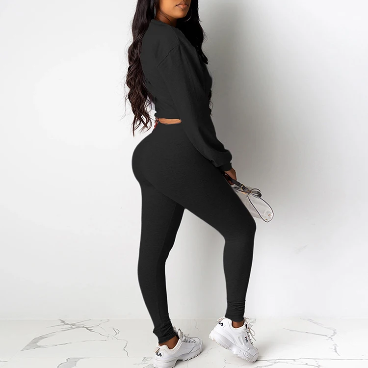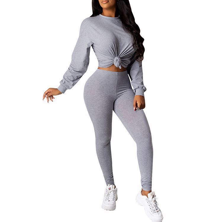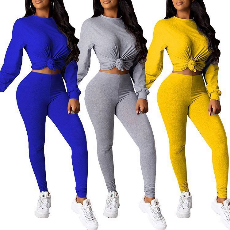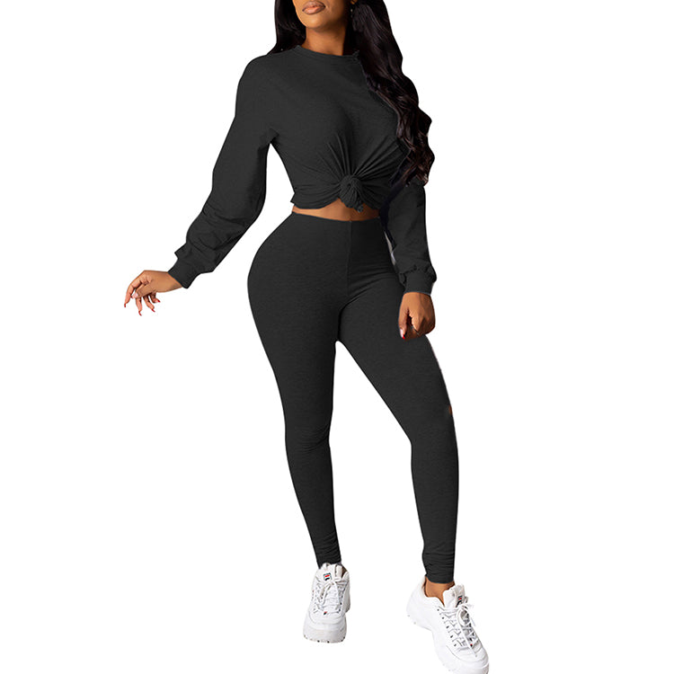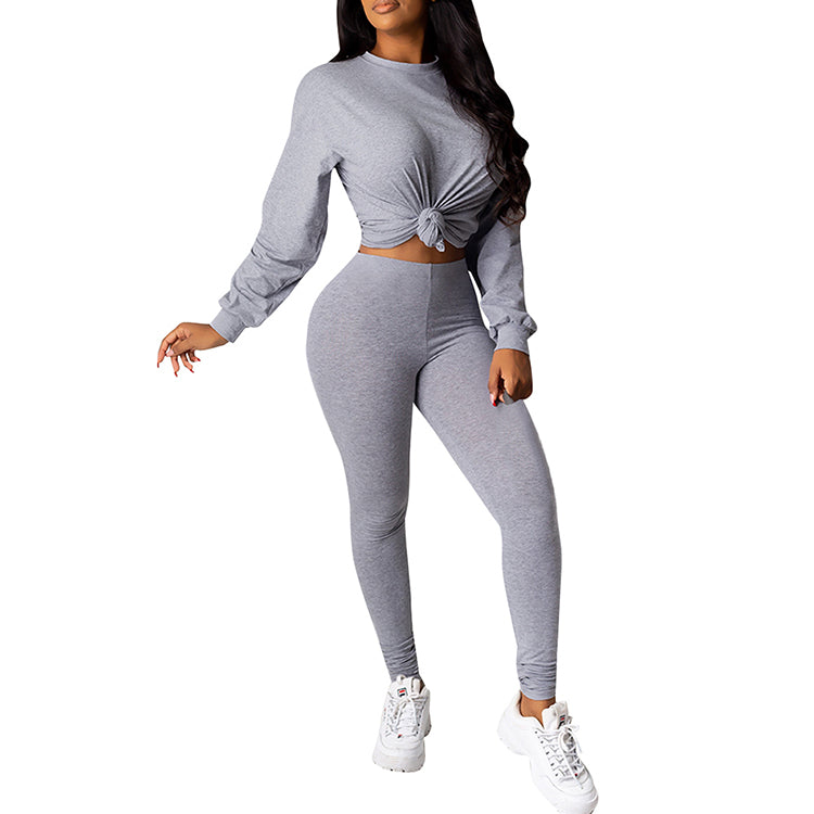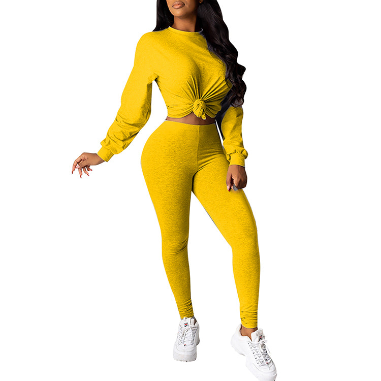 Ladies fashion solid color casual two-piece suit