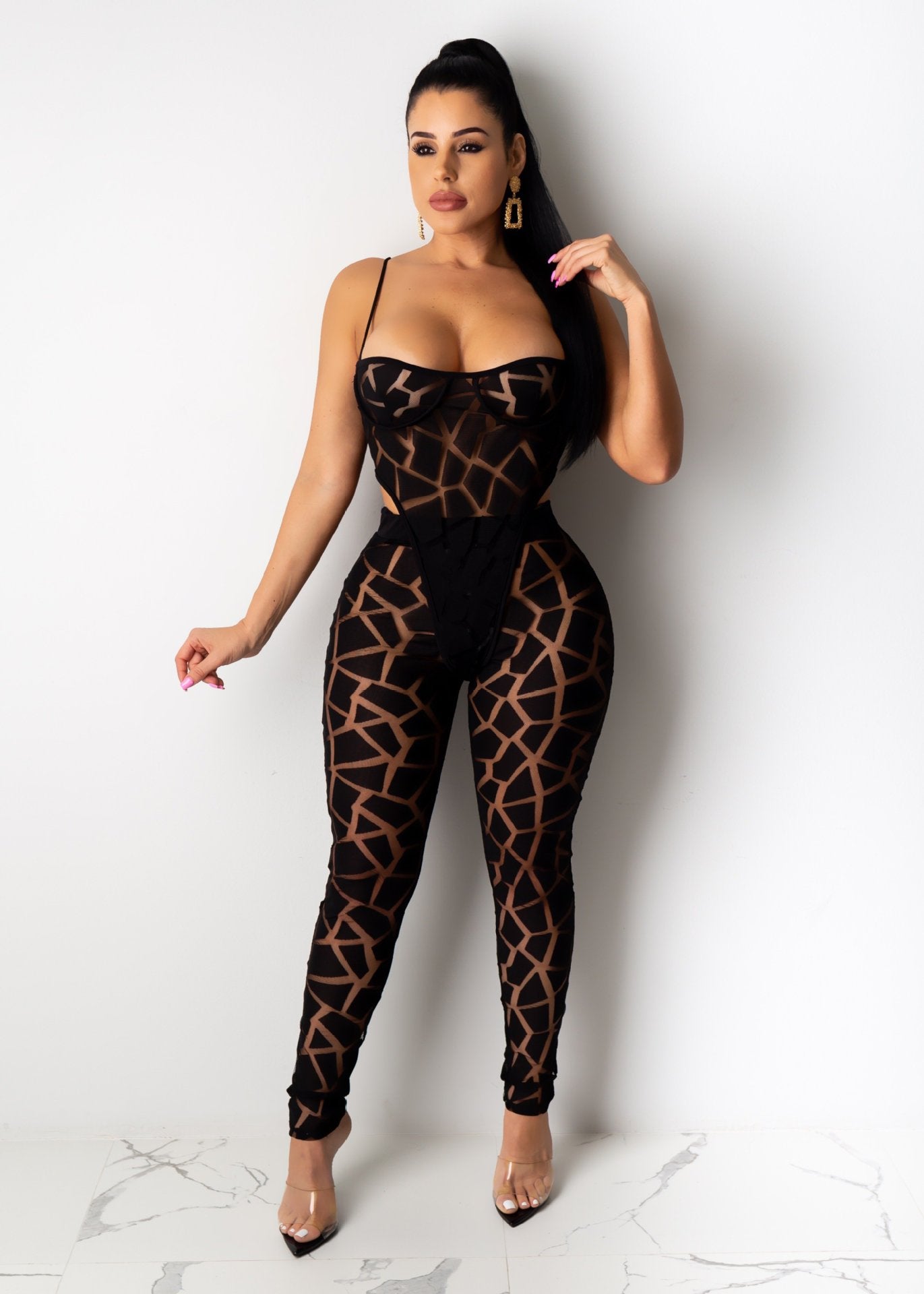 Summer Clothes For Women Black Mesh Top 2 Piece Set Bodysuit And Pants See Through Bodycon Two Piece Set Women Clothing Sexy