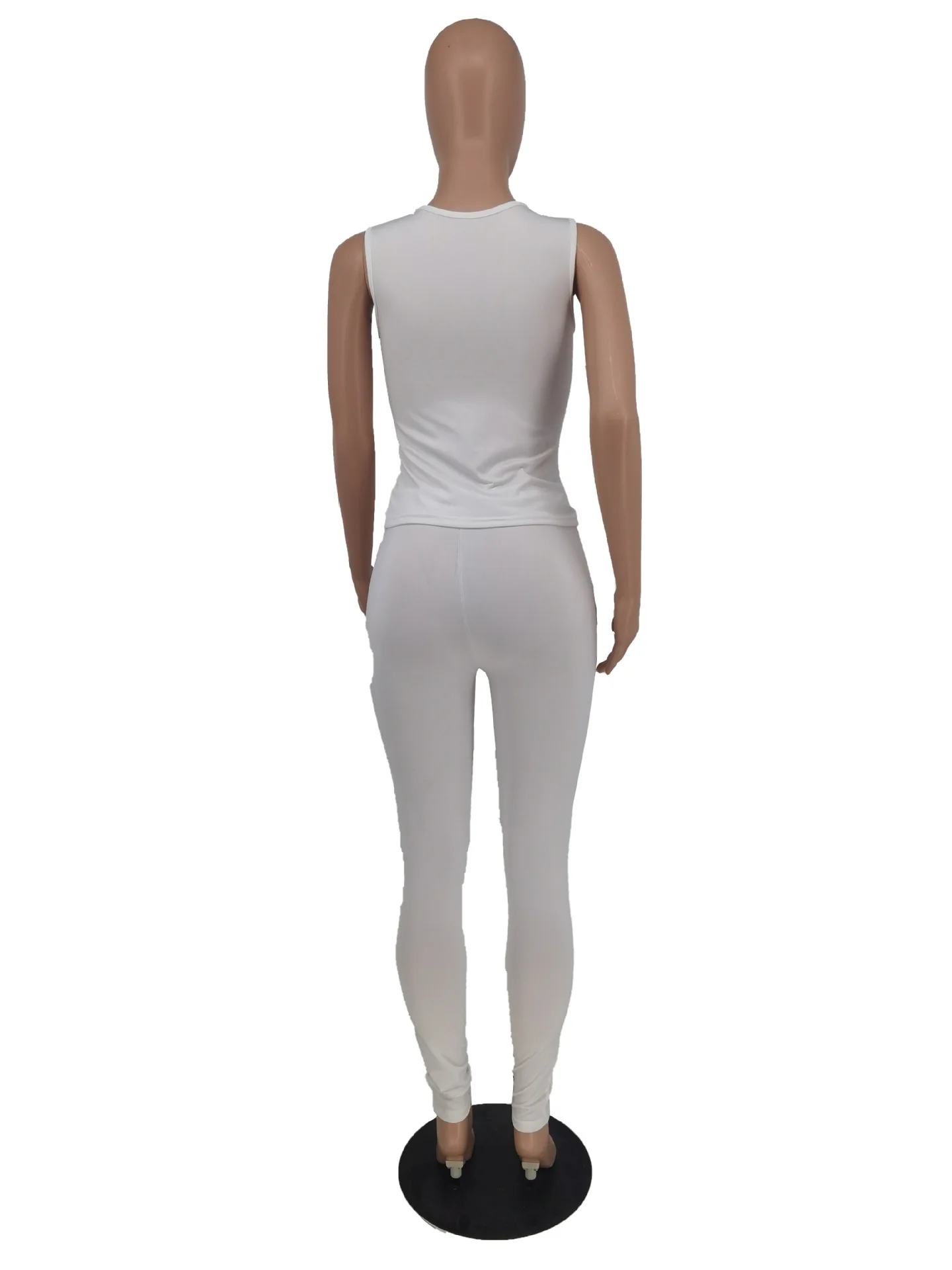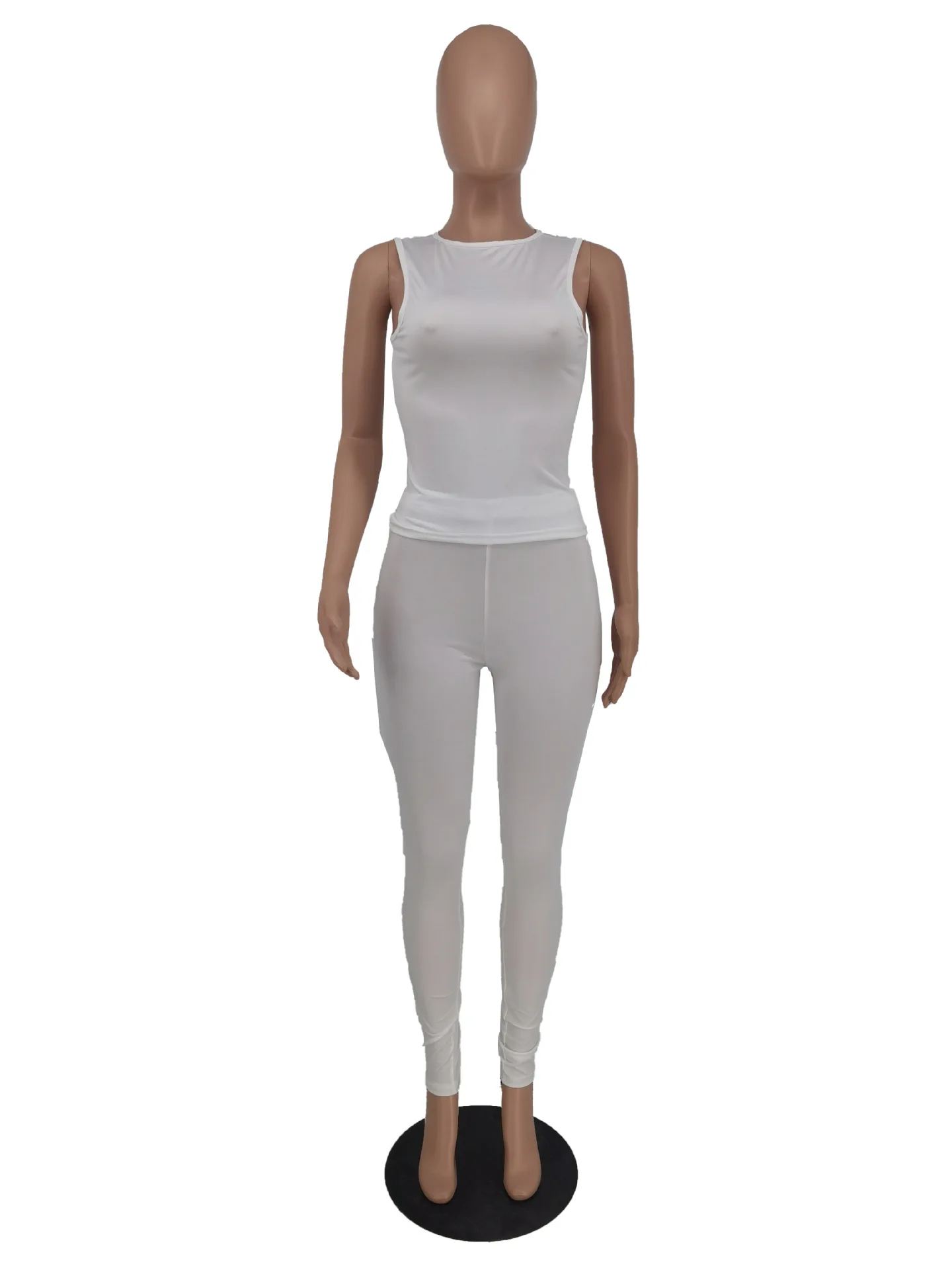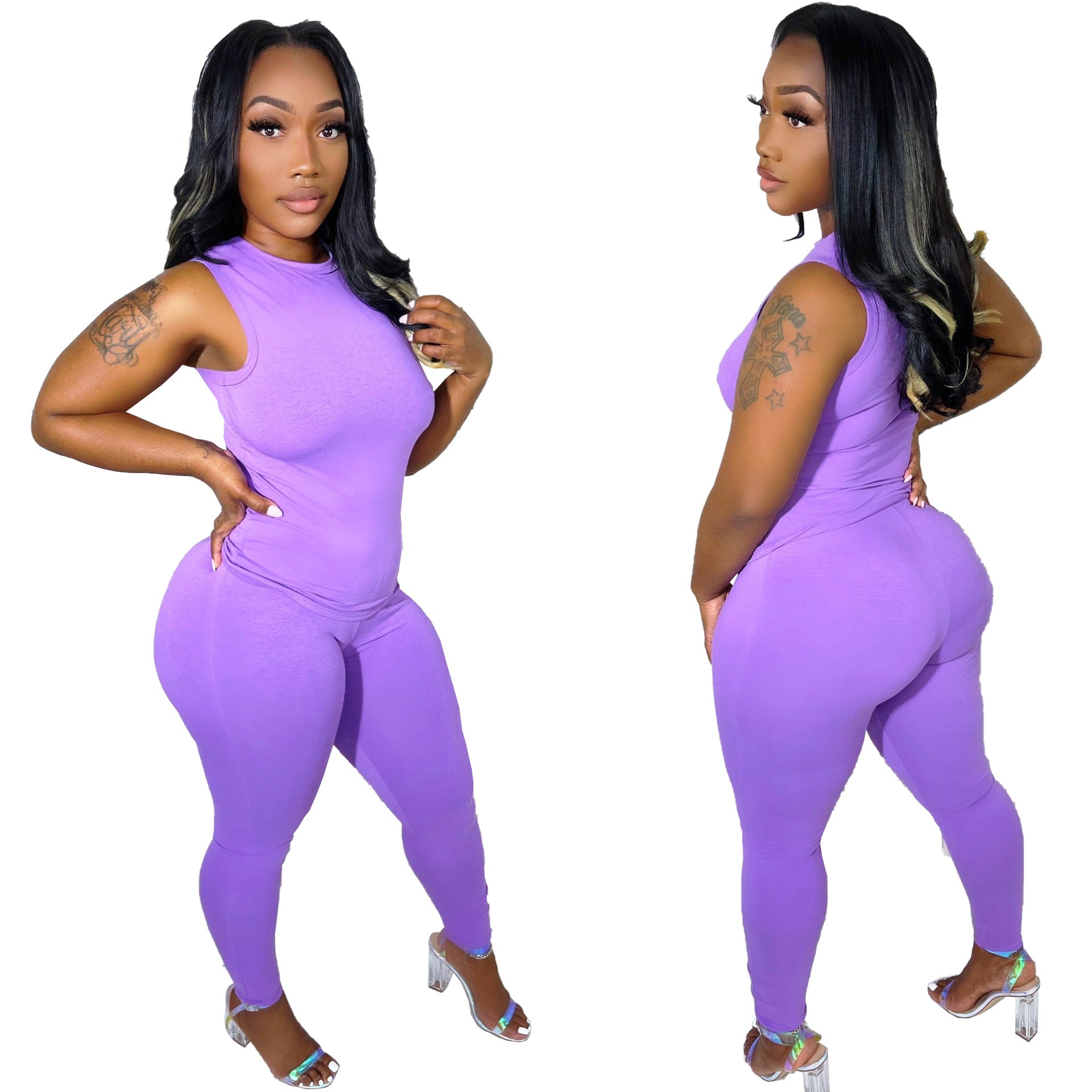 The New Listing Solid Casual Sleeveless Tight Set Women's Clothing Tank Top Two Piece Leggings Set