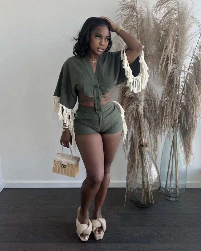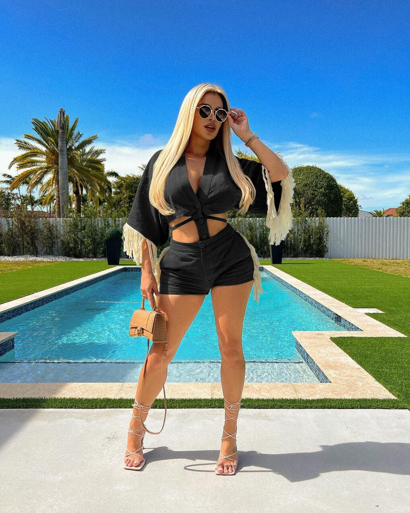 Wholesale Boutiques Clothing Women Two Tops Shorts Set Tassel Shirt Shorts Lace Up2 Piece Set Women Summer Clothes For Women
