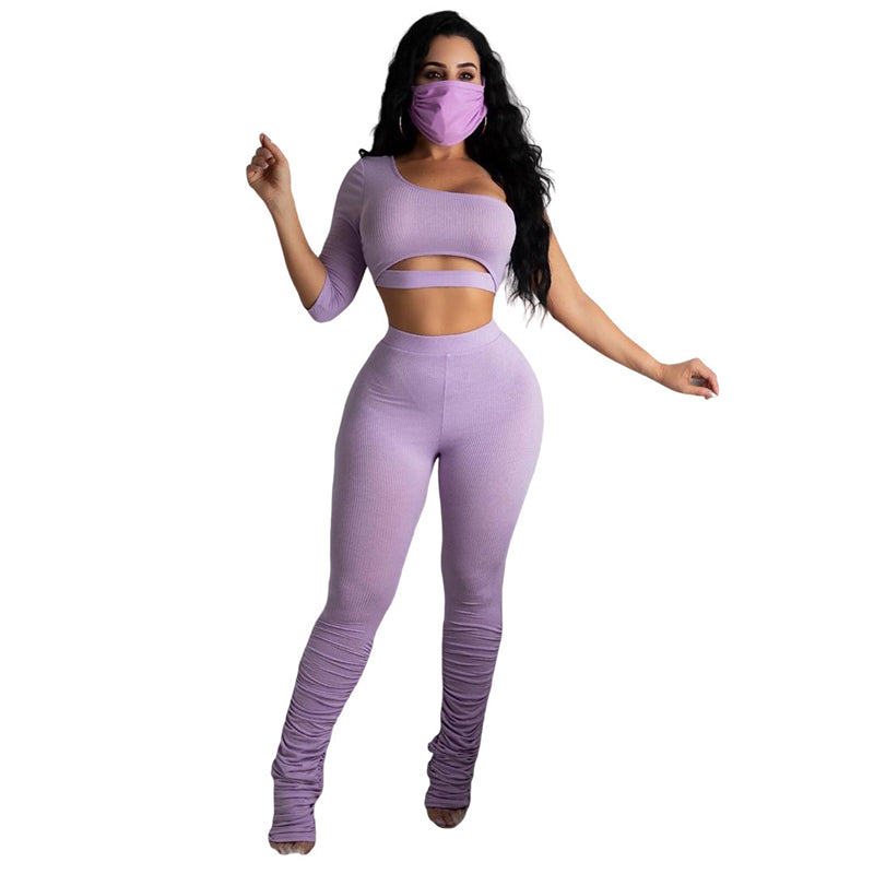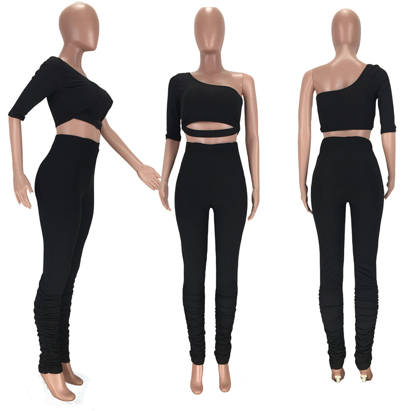 Womens fashion two piece stack pants wholesale design 2 piece stacked pants set
