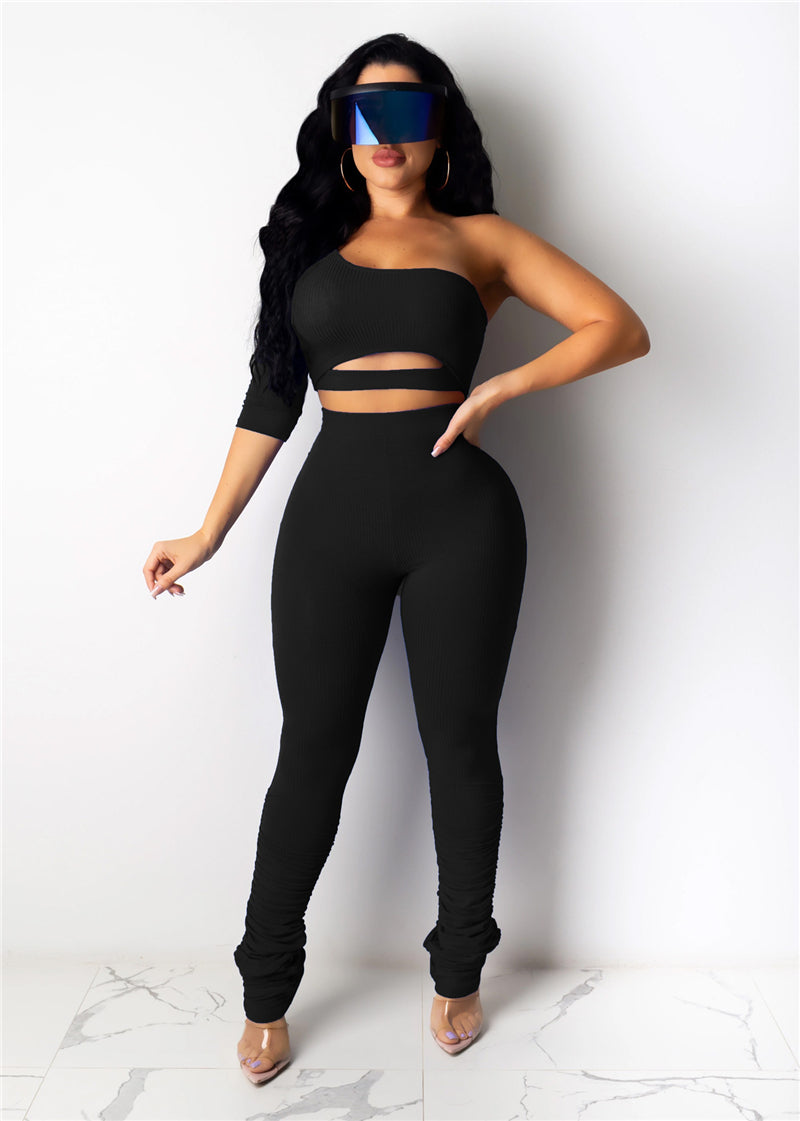 Womens fashion  two piece  stack pants wholesale design 2 piece stacked pants set